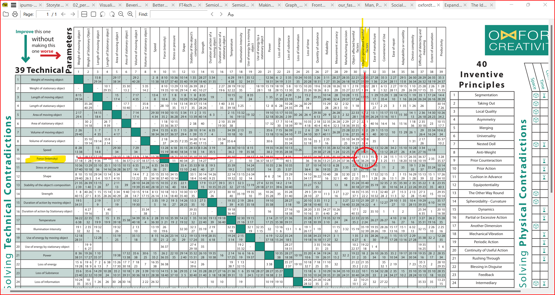 name: title-slide class: title-slide, center, middle, inverse # TRIZ: A Very Contradictory Problem-Solving Method #.fancy[A Introduction and Workflow for Students] <br> .large[by Arvind Venkatadri] Written: May 04 2020 Updated: May 26 2025 .footer-large[.right[.fira[ <br><br><br><br><br>[The Foundation Series](https://arvindvenkatadri.com/) ]]] --- ## What's Your Problem? .pull-left[  ] .pull-right[ - Whatever can be wrong with a pizza box!! - Lids get soggy with steam, and may touch the toppings! - Steam naturally happens because pizza is hot !! So? CONTRADICTION: Ever tried to scrape cheese off the inside of a pizza box lid? ] --- ## What's Your Problem? .pull-left[  ] .pull-right[ - Chains *need* to be flexible so that can wrap around sprockets - Chains *need* to be hard so that they don't snap So? CONTRADICTION: Ever had greasy hands trying to re-align a slipped chain? ] --- ## A Good Contradiction is ~~Half~~ the Problem <center>  --- background-image: url("images/Azerbaijan.png") background-size: contain ## So what *is* TRIZ? .pull-left[  ] .pull-right[  - All *creative* Patents solved..CONTRADICTIONS! ] --- ## What motivated TRIZ? .pull-left[ - Altshuller **data-mined** 25K Patent Applications - **Similar Contradictions** were found across Domains - **Similar Inventive Solutions** were found across Domains - But...how does a Plumber talk with a Heart Surgeon? - Watch [Grey's Anatomy](https://www.netflix.com/title/70140391) or [House](https://www.amazon.com/House-Season-1/dp/B000WCT7M8) together? ] .pull-right[ - https://www.dicardiology.com/content/blogs/explaining-cardiac-conditions-layman-using-old-house-analogy  ] --- ## So, a Metaphoric Language .pull-left[ - ***Big Idea :*** Generalized Problem: "Your Problem has been solved somewhere else", in a different DOMAIN in a different LANGUAGE - So can there be a "common" "crossover" language? - Altshuller invented one, with **Metaphors** - 48 TRIZ Metaphors for **stating** the Problem Contradiction - 40 TRIZ Metaphors for **Inventive Principles** ] .pull-right[  Why is a Raven like a Writing Desk? ] --- ## A TRIZ Worldview: Resources .pull-left[ - A Unique Way of looking at **Available Resources** - The thing causing the problem is also a resource? - [Could Titanic have used the iceberg? PDF](https://www.metodolog.ru/triz-journal/archives/2003/03/g/07.pdf) - Helps avoid [Functional Fixedness](https://thedecisionlab.com/biases/functional-fixedness) ] .pull-right[  ] --- ## A TRIZ Worldview: IFR .pull-left[ - The **Ideal Final Result** - A "Want my Cake and Have it Too" outlook - A uniquely TRIZ *no-compromise* formulation - A *solution* before **the** Solution - Focusses the Attention to specific regions of the Solution Space ( as we will see) ] .pull-right[ - Helps [refine the problem](https://metodolog.ru/triz-journal/archives/1998/06/d/index.htm) - Eliminates the deficiencies of the original system - Preserves the advantages of the original system - Does not make the system more complicated (uses free or available resources.) - Does not introduce new disadvantages - (https://metodolog.ru/triz-journal/archives/1997/02/a/index.html) ] --- ## TRIZ Worldview: Specify the Ideal Final Result (IFR) .pull-left[ - State an **Ideal Final Result** - A basic principle of TRIZ is that systems evolve towards increased **ideality**, where ideality is defined as `$$Ideality = Benefits / (Harm + Costs)$$` - **Evolution** is in the direction of - ⬆ Increasing benefits - ⬇ Decreasing costs - ⬇ Decreasing harm - IFR allows us to **invert the direction of the problem**: to come backwards from Solution towards the Situation ] .pull-right[ The ***extreme result*** of this evolution is the Ideal Final Result: - It has all the benefits, - none of the harm, and - none of the costs of the original problem. - The Ideal Final Result describes the solution to a technical problem, **independent of the mechanism or constraints of the original problem**. - It occupies no space, has no weight, requires no labour, requires no maintenance. ] --- ## A TRIZ Worldview: Contradictions .pull-left[ - **Contradictions** exist at multiple levels - *Administrative*. [Oh those Russians...](https://www.forbesindia.com/article/recliner/oh-those-russians-boney-m/21642/1) - *Technical* (TRIZ Metaphors, as we'll see) - *Physical* [An Impossible Sounding Statement](https://aliceinwonderland.fandom.com/wiki/Six_Impossible_Things) which we might discover... - Ever heard of [Hiranyakashipu?](https://en.wikipedia.org/wiki/Hiranyakashipu) ] .pull-right[  ] --- ## So How Do Metaphors Work in Classical TRIZ? .pull-left[ - State your Problem in "plain English" - "Metaphorize" your Problem using 48 TRIZ Parameters - You now have a **TRIZ Contradiction** - Maybe more than one way!! - Look up TRIZ Generalized Solutions for your Contradiction - You have say 4 **TRIZ Inventive Principles** - These are also metaphors! - "Un-metaphorize" them back into your problem ] .pull-right[ <img src="images/generic-solution.png" width="522" height="350px" /> - Ever used log tables? Addition is a "metaphor" for multiplication...no? ] --- ## TRIZ Workflow: Story #1: Meat Transportation .pull-left[ - A meat plant owner in South America flies product to the United States. - Refrigeration is required during flight to keep the meat frozen. - Competition increased, Need to reduce delivery cost. - It became obvious that he must increase the amount of product per air shipment. - Refrigeration system... - CONTRADICTION: **How to increase shipment AND keep it frozen**? He did exactly that. ] .pull-right[ - **Utilization of existing resources** Flying at an altitude of 15,000–25,000 feet *the air temperature is below 32 deg. F*, so no refrigeration system was actually needed.  ] --- ## TRIZ Workflow: Story #2: Red Adair and Oil Well Fires .pull-left[ - An oil well in Saudi Arabia exploded and caught fire. - Initial efforts to extinguish it failed, - Famed firefighter Red Adair was called in. - There was enough